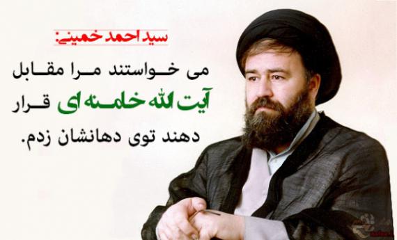به گزارش پایگاه خبری تحلیلی کورنگ به نقل از نافع ،مرحوم حاج سید احمد خمینی: هر کس بین اطاعت از مقام معظم رهبری وامام تفاوت قائل باشد،درخط آمریکاست.می‌خواستند مرا مقابل آیت‌الله خامنه‌ای قرار دهند توی دهانشان زدم.