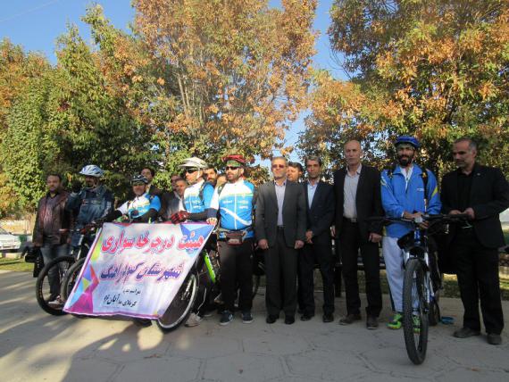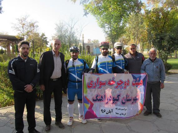 این دوچرخه سواران صبح امروز دوشنبه با بدرقه ورزشکاران،فرماندار و رئیس تربیت بدنی شهرستان کبودراهنگ ومسئولین ادارات و اقشار مختلف مردم،حرکت معنوی خود را از جوار گلزار شهدای گمنام کبورداهنگ که حامل پیام ملت ایران که همان عشق درونی آنان به خاندان عصمت و طهارت است را آغاز کردند.