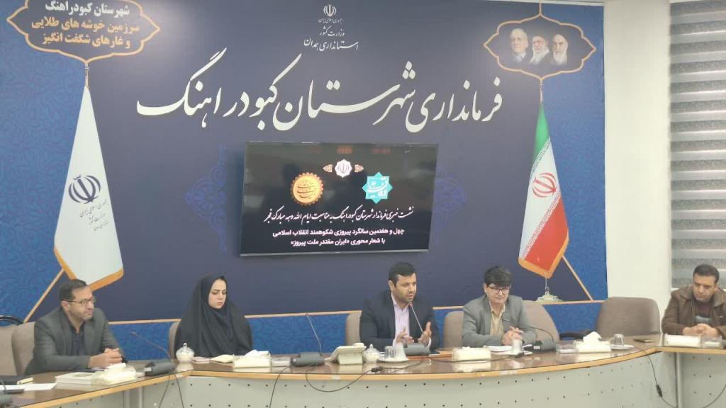 در این نشست، دکتر سید ایوب موسوی فرماندار کبودراهنگ، با تشریح برنامههای دهه فجر، این ایام را فرصتی برای ارائه گزارش عملکرد و تبیین اقدامات دولت در سطح شهرستان عنوان کرد.
