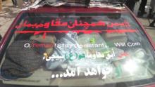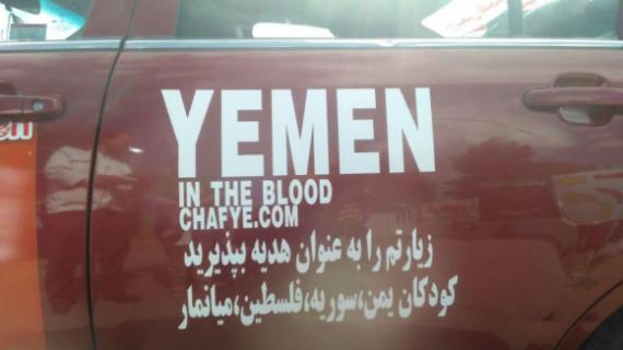وی که از مشهد موکب به موکب حرکت کرده به موکب حضرت فاطمه الزهرا ملایر رسیده می گوید این شعارها را بر روی خودرو نوشته ام وسعی کرده ام که توجه مردم را به این مسئله جمع که یمن همچنان مقام بمان او خواهد آمد.