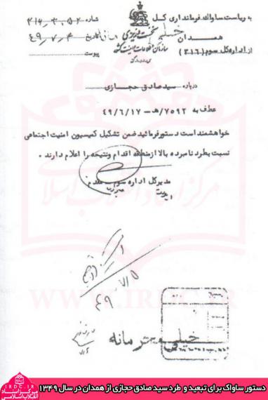 از آن پس فعالیتهای سید صادق حجازی به شدت تحت کنترل قرار میگیرد.